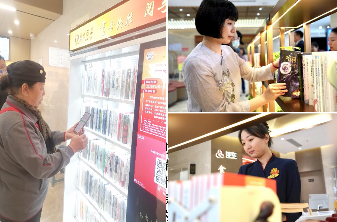 随后,德胜饭店邀请社区居民参观体验了“墨啡”读书空间和“书享智慧书吧”的自助借阅服务。
