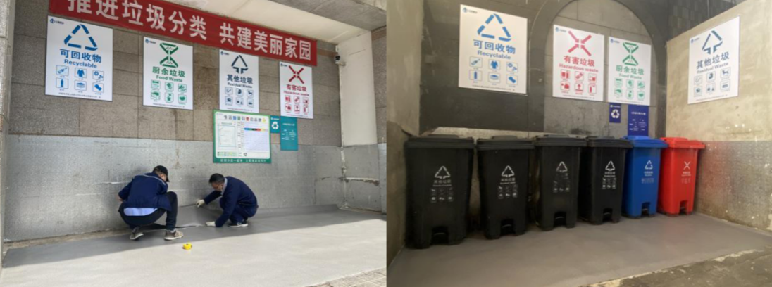 修缮地面,优化环境。为提升垃圾分类驿站的整体环境卫生,物业管理分公司积极采购易清洗、防滑耐磨的地板革,对中盛大厦、中雅大厦垃圾分类驿站地面进行重新铺设。修缮后的垃圾分类驿站焕然一新,大幅提升了居民对物业服务的满意度。