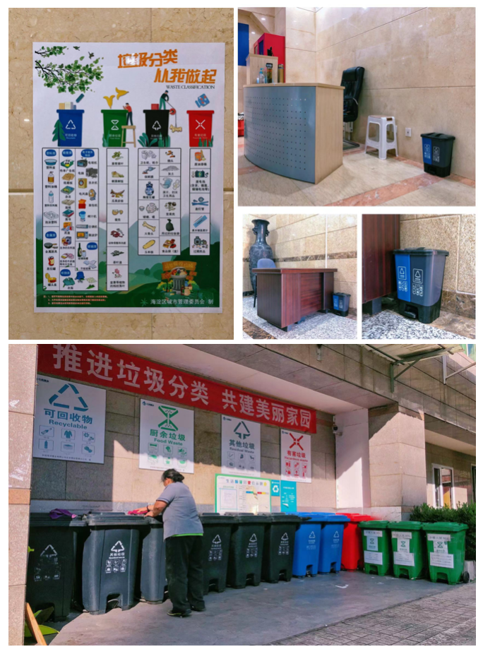 设置便民垃圾分类小桶。鉴于中盛大厦属于商住两用房,人员进出频次较高,一层大厅地面有时存在乱丢垃圾的现象。针对这一情况,物业管理分公司积极采取措施,在大厦一层西门、南门大厅分别设置垃圾分类小桶,同时要求保洁人员增加对小桶的清理频次,为大厦业主、客户提供方便的同时,避免新设的垃圾桶造成二次环境污染。