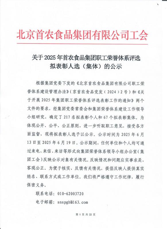 关于2025年集团职工荣誉体系评选拟表彰人选(集体)的公示